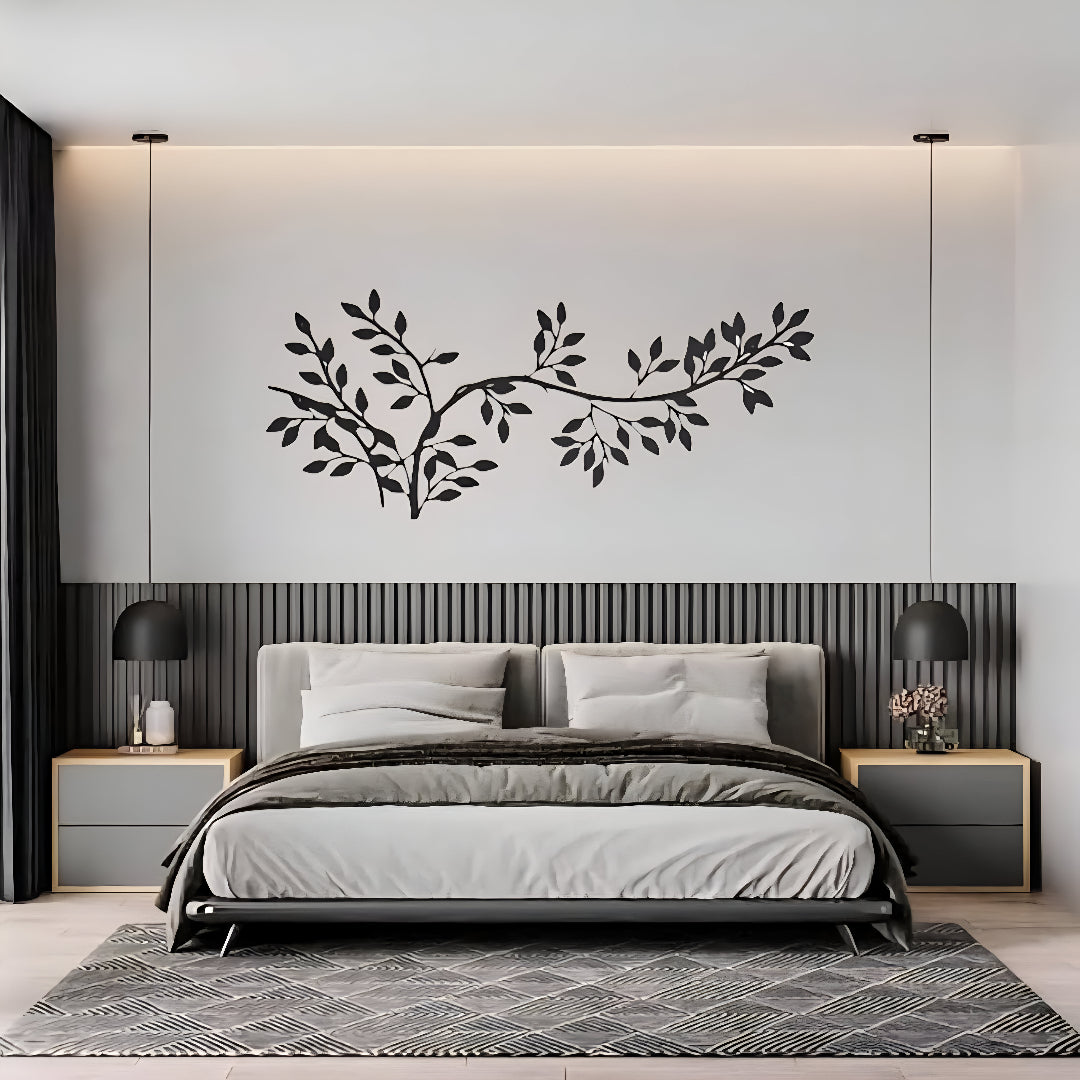 The Captivating tree branch with leaf is an exquisite wall sculpture, crafted with meticulous attention to detail. Measuring 36 x 60 inches, this piece is made from high-quality iron, offering a substantial and elegant presence — perfect for large walls or open spaces.